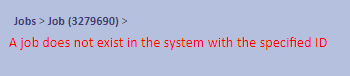 If the number was incorrect, a message saying "A job does not exist in the system with the specified ID." is displayed.